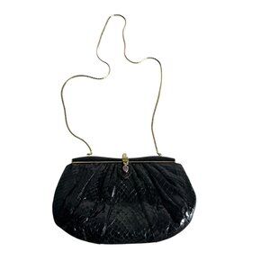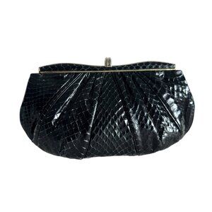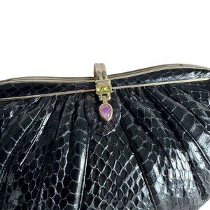 Judith Leiber Vintage Black Snakeskin Evening Bag with Gemstone Clasp