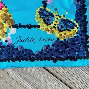 Judith Leiber Gorgeous Turquoise Colorful Butterfly Print Scarf 100% Silk