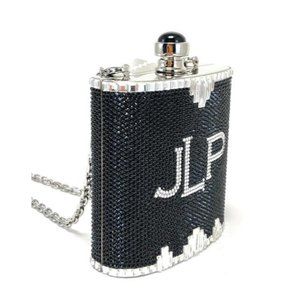 Judith Leiber Logo Rhinestone Flask Crossbody Crystal Clutch Shoulder Bag