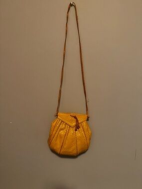Judith Leiber Mustard Yellow Python-Texture Drawstring Crossbody