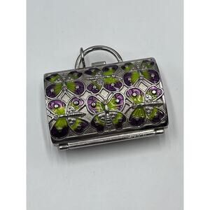 Judith Leiber Purple Green Enameled Butterflies Motif Handbag Trinket Pill Case