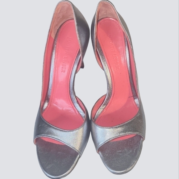 Judith Leiber Women's Silver Leather Open Toes 4" Stiletto Heels Size 7B