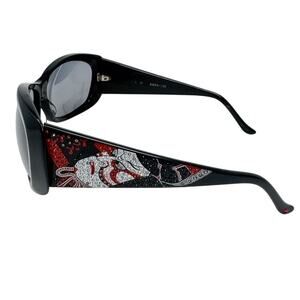 Judith Leiber vintage black red rhinestone Kabuki mask sunglasses w/ case