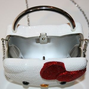100% Authentic Judith Leiber Hello Kitty Red Bow Top Handle Clutch Bag