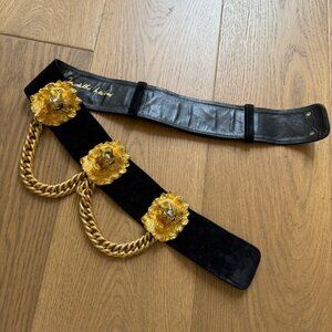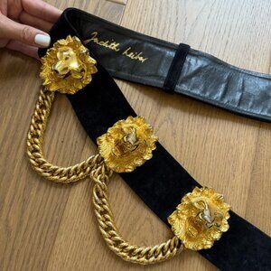 Judith Lieber Vintage 80s Lionshead Adjustable Belt - Suede & Gold Hardware