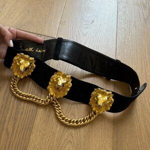 The most iconic Judith Leiber 80s lions head belt with drop chains.