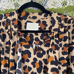 Judith March Anthropologie Leopard Print Neck Tie Blouse Size Small