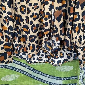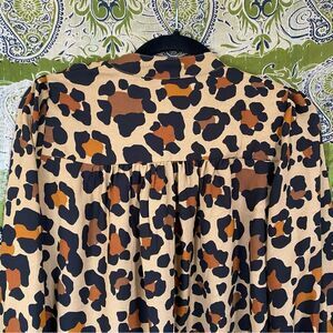 Judith March Anthropologie Leopard Print Neck Tie Blouse Size Small