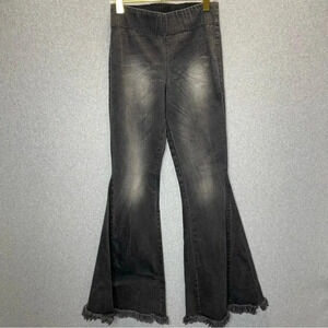 Judith March Bell Bottom Pull On Embroidered Jeans