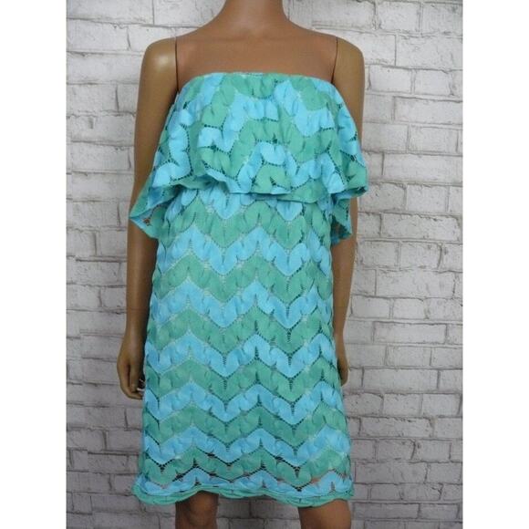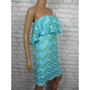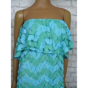 Judith March Blue Green Zig Zag Lace Knit Strapless Empire Dress Small NEW