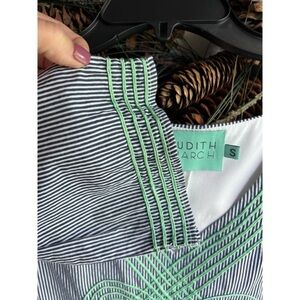 Judith March Blue and White Pinstriped Dress Mint Green Embroidery Size Small