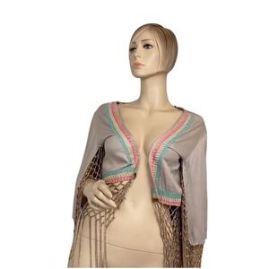 Judith March Bohemian Fringe Aztec Festival Open Front Vest Size Medium