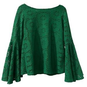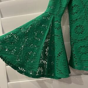 Elegant green lace tunic with flared sleeves. Perfect for a stylish look.