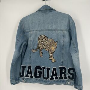 Judith March JAGUARS Denim Jacket Women's Small / Medium Custom Varsity Sequins