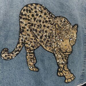 100% Cotton. Has Pockets. Jaguar applique has sequin details.