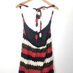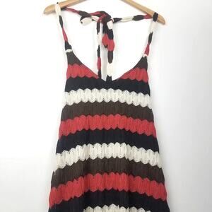 Judith March | Knit Halter Dress Striped 1960s Style Red Black White Medium