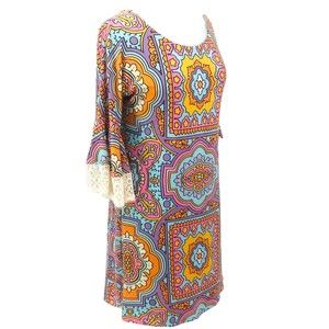 Judith March Lace Flare Sleeve V-Neck Boho Fit & Flare Mini Dress Sz Medium - MADE IN USA
