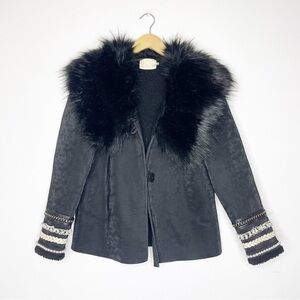 Judith March Lagerfeld Black Fur Blazer Jacket Size Large