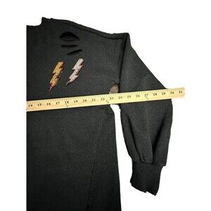 Judith March Medium Heather Black Lightning Bolt Soft Sweatshirt $165 MSRP #T9-1