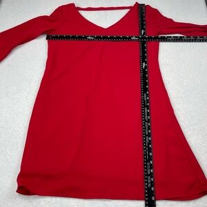 Judith March Mini Dress Womens Small S Red Bell Sleeves V-Neck Style 807D-1 Tunic Top. Very Good Pre-owned condition. No found flaws or stains. See photos for measurements. Ships quickly from smoke-free home.