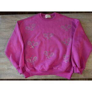 Judith March NWOT Pink Bedazzled Tennis Crewneck Pullover Sweatshirt Small