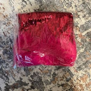 Brand new, still in original package, Judith March pink sequin feather skirt from the Birthday collection.