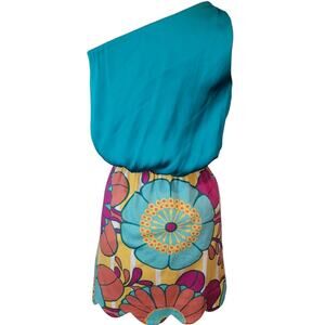 Judith March One Shoulder Mini Sundress Colorful Floral Print Sz S EUC