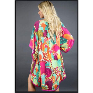 Judith March Open Kimono Size Large Southwestern Cactus Desert Colorful Topper