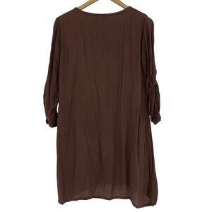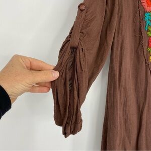 Judith March Brown Embroidered Lined Peasant Bohemian Tab Sleeve Dress