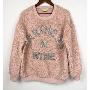 Judith March Pink Sherpa S Sweatshirt Partners N Wine Rhinestone Lettering