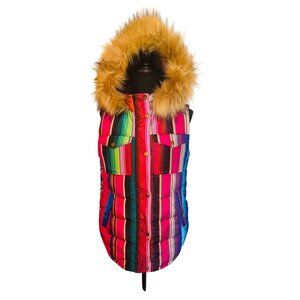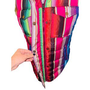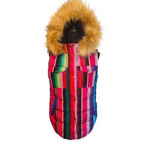Judith March Rainbow Striped Puffer Vest Faux Fur Hood S Outdoor Street Style