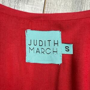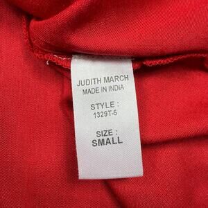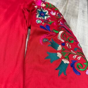 Judith March Shirt Top Small Red Floral Embroidered Sleeve Lightweight V-neck