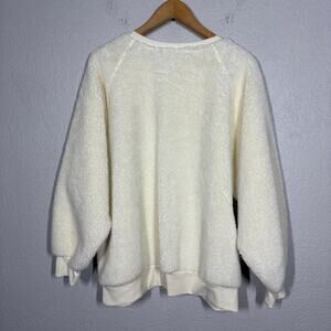 Judith March Ski Season Fuzzy Pullover Sweatshirt Casual Open Neck Cream - XL