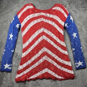 Judith March Sweater Open Knit Stars Stripes Festival USA Coastal RWB Large F146