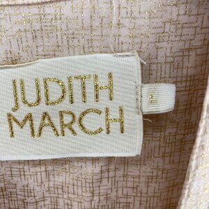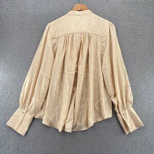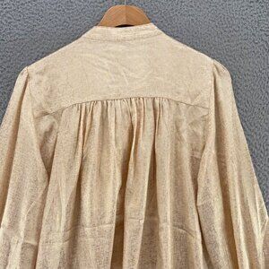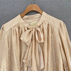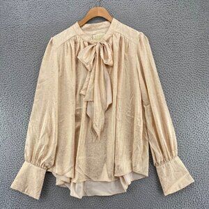 Judith March Top Womens Large Gold Shimmer Long Sleeve Tie Neck Ruched Blouse