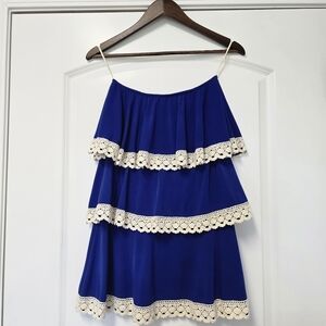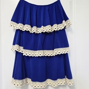 Judith March Womens 3 Tiered Dress Strapless Size Medium Blue White Crochet Lace