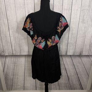 Judith March Women's Medium Black Embroidery Floral Birds Off Shoulder Dress