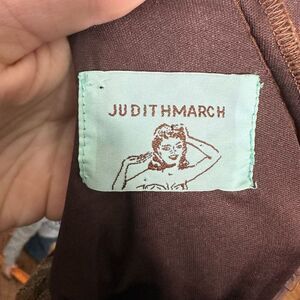 Judith March orange and brown, 70’s, chevron, crossover back, mini dress with bell sleeves. Pairs well with boots or heels. Approximately 18 inches from armpit to armpit, 19 inches across the waist, and 32 inches long. In good, used condition. From a pet and smoke free house.
