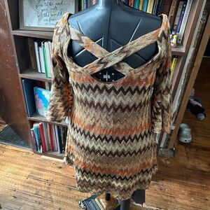 Judith March orange & brown chevron 70’s crossover S dress
