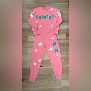Judith March pink Holiday Grinchy starts joggers pullover sweatshirt set size M