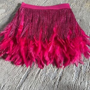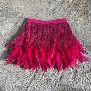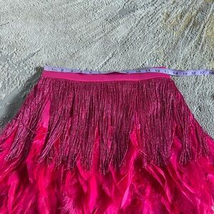 Judith March skirt pink fuchsia fringe feather mini elastic waist pull on flapper skirt