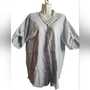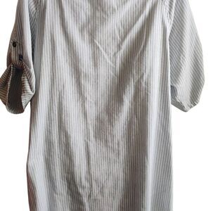 This casual dress by Judith March features a stylish mandarin collar and 3/4 dolman sleeves, perfect for a relaxed day out. The blue and white color scheme adds a fresh touch to its comfortable, loose fit. Ideal for casual occasions, this dress combines effortless style with comfort.