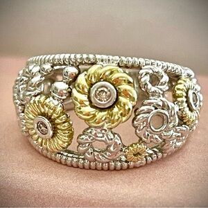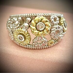 Beautiful 18k yellow gold/Silver with diamonds floral ring by designer Judith RIPKA.