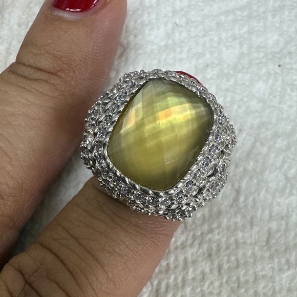 This stunning ring features a captivating yellow gemstone set in a beautifully crafted silver band. Perfect for adding a touch of elegance to any outfit.
