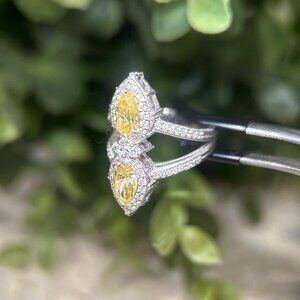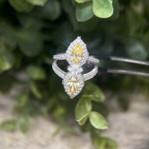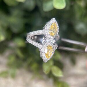 Authentic Judith Ripka 925 Sterling Silver 2 Yellow Stones Ring.