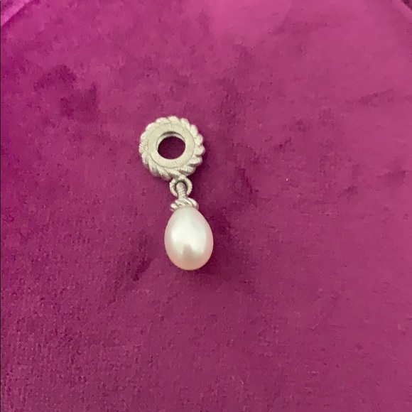 @reneehrop5 hi it’s sterling silver with a fresh water white pearl , it’s from the Judith Ripka collection . The size I’d say is about 1 1/3 “ by 1/2” . It’s for a charm bracelet