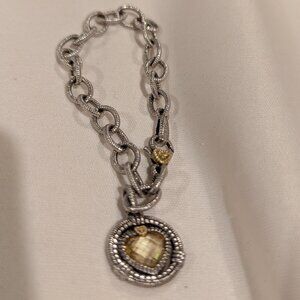 Beautiful Judith Ripka silver bracelet with Citrine heart charm. Very nice details, only worn a few times.