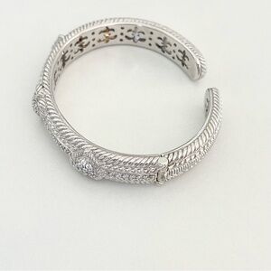 Stunning Designer Judith Ripka 3 Heart Clear Sparkly CZ Hinged Stone Cuff Bracelet