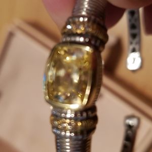 Beautiful hinged cuff bracelet by designer Judith Ripka. Citrine stone and diamond chips.