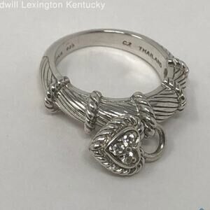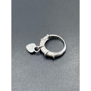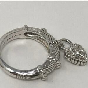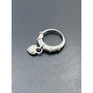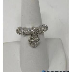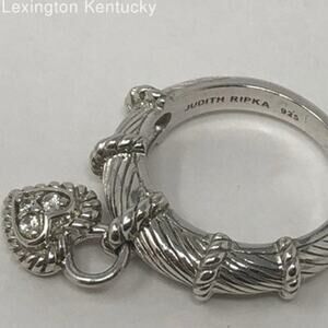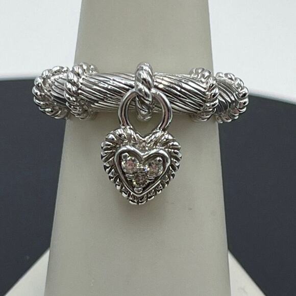 Judith Ripka Dangle Heart Charm CZ Diamonique Sterling Silver Ring Size 7